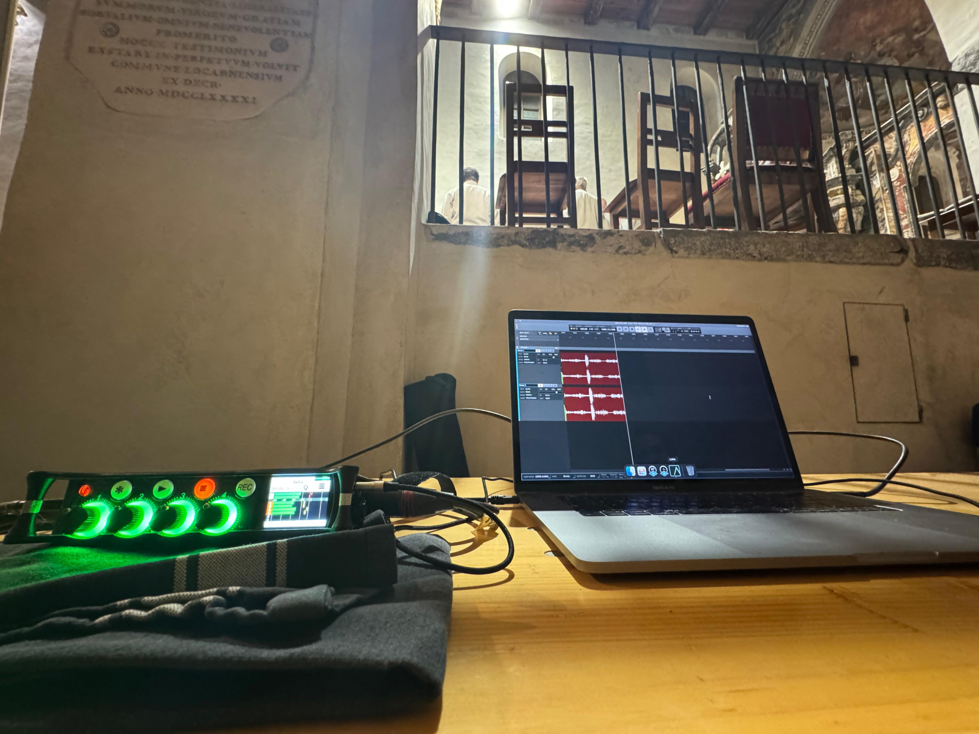 Registrazione del cd del coro San Michele (Sementina, TI), con un collettivo di coristi, piano e quartetto d'archi.